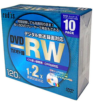 ポイント10倍!【1/21 10:00?1/23 9:59まで】DVD-RW/VIDEO用[CPRM対応][2倍速][10枚][5mmスリムケース][プリンタブルレーベル] 【D】RVWC470-F1 価格: 1,050円 レビュー評価:0.0 レビュー数:0 【主な特徴】●著作権保護CPRM(Content Protection for Recordable Media)技術に対応。BSデジタル放送等の「1回だけコピー可能」映像コンテンツの録画が可能です。●DVD-RW Version 1.1/2X-Speed DVD-RW Revision 1.0規格に準拠しており、1?2倍速記録が可能です。●1000回以上の安定した繰り返し録画が可能。●記録面に特殊オーバーコーティング技術を採用。ビデオ映像を傷や汚れ、埃から守ります。ビデオモードで記録されたディスクは既存のDVDビデオプレーヤーで録画内容を再生する事が出来ます。(一部の機種では再生出来ません) Supported by 楽天ウェブサービス |